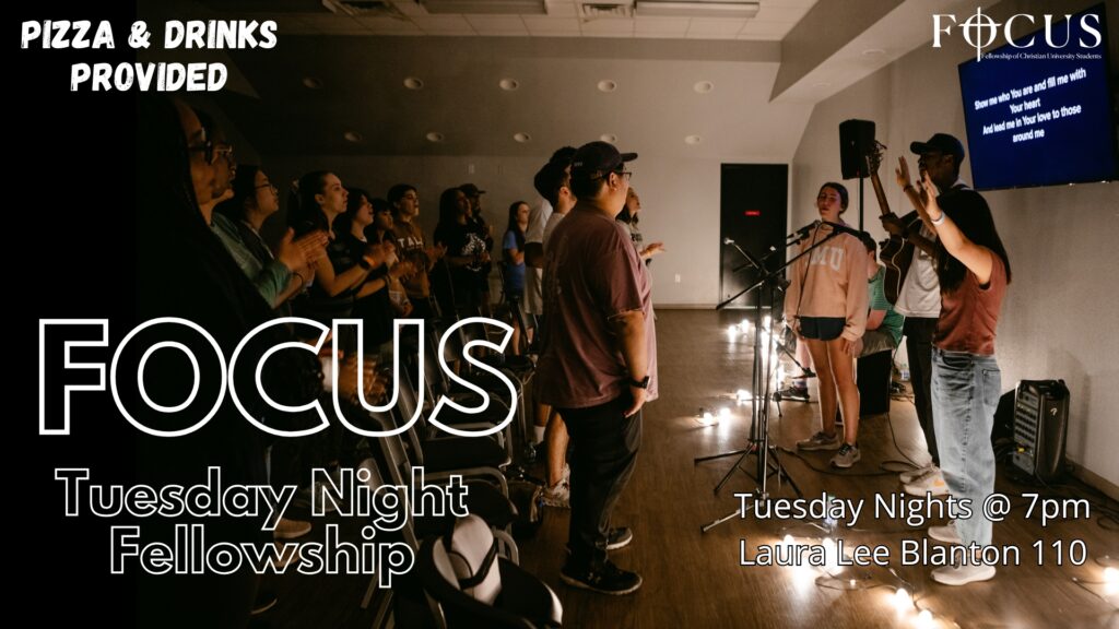 Every Tuesday | 7-8:15pmLaura Lee Blanton 110 This is our weekly time to get together, share a meal, develop friendships, and celebrate what God is doing in our lives. We hope you'll join us!