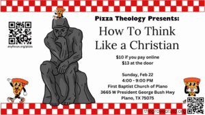 Pizza Theology is a chance each semester to get teaching of significant depth on a Biblical topic, and we have a pizza dinner together in the middle. You can sign up at anyfocus.org/pizza